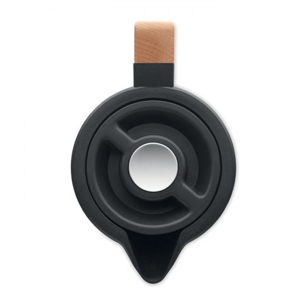 Dvojstenná izolovaná vákuová kanvica z recyklovanej nehrdzavejúcej ocele (90 % recyklovanej nehrdzavejúcej ocele a 10 % nehrdzavejúcej ocele) vo vnútri a vonkajšia stena z PP s drevenou rukoväťou. Objem: 1 l.