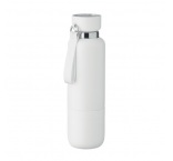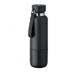 Dvojstenná izolovaná fľaša z 90 % recyklovanej nehrdzavejúcej ocele a 10 % nehrdzavejúcej ocele, s integrovanou rukoväťou a ďalším dlhým popruhom (70 cm) v PP viečku. Nepriepustná. Spodný pohár je súčasťou balenia. Objem: 500 ml.