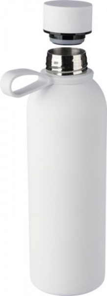 Dvojstenná termoska z recyklovanej nerezovej ocele s vnútrom z nehrdzavejúcej ocele 304 a vonkajšou stranou z nehrdzavejúcej ocele 201. S pogumovaným povrchom. Skrutkovacie viečko z PP s kovovými detailmi a silikónovým pútkom. Balené v hnedej krabičke.