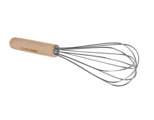 Metlička na miešanie z nehrdzavejúcej ocele s rukoväťou z bukového dreva, ideálna na každodenné varenie.