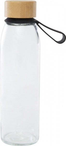 Jednostenná sklenená fľaša na vodu so skrutkovacím bambusovým viečkom, ktoré pochádza z udržateľnejších zdrojov. Súčasťou je pohodlné silikónové pútko na jednoduché prenášanie. Dodáva sa v darčekovej krabičke z recyklovanej lepenky. Objem: 500 ml.