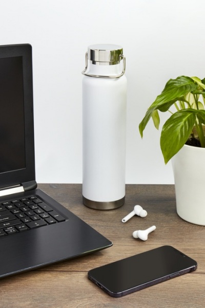 Dvojstenná fľaša z recyklovanej nerezovej ocele s certifikáciou RCS a medenou vákuovou izoláciou. Má skrutkovacie viečko s odolným pútkom. Široký otvor na pohodlné plnenie a nalievanie. Objem: 650 ml. Dodávané v darčekovej krabičke.
