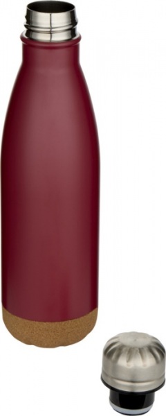 Vákuovo izolovaná fľaša na vodu z nerezovej ocele s korkovými detailmi na dne. Dvojitá izolácia udrží nápoje teplé alebo studené po dobu niekoľkých hodín. Dodáva sa v darčekovej krabičke z recyklovanej lepenky. Objemová kapacita: 500 ml.