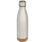 Vákuovo izolovaná fľaša na vodu z nerezovej ocele s korkovými detailmi na dne. Dvojitá izolácia udrží nápoje teplé alebo studené po dobu niekoľkých hodín. Dodáva sa v darčekovej krabičke z recyklovanej lepenky. Objemová kapacita: 500 ml.