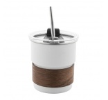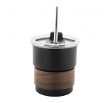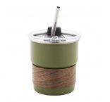 Jednostenný cestovný hrnček z recyklovanej nerezovej ocele s rukoväťou z orechového dreva, plastovým viečkom a slamkou z recyklovanej nerezovej ocele. 260 ml.