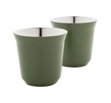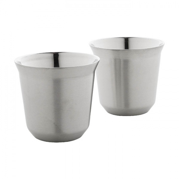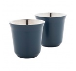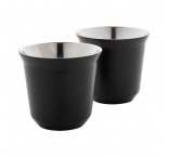 Sada 2 dvojstenných termohrnčekov na espresso v tvare kávových kapsúl z recyklovanej nerezovej ocele, 80 ml. V krabičke z kraftového papiera.