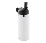 Dvojstenná vákuová fľaša z recyklovanej nerezovej ocele s odklápacím viečkom z PP, rukoväťou a integrovanou slamkou. 500 ml.