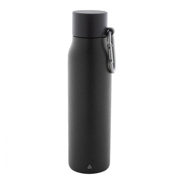 Dvojstenná vákuová fľaša z recyklovanej nerezovej ocele s viečkom z PP a karabínou z recyklovaného hliníka. 500 ml.