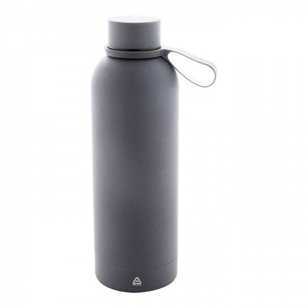 Dvojstenná vákuová fľaša z recyklovanej nerezovej ocele s pogumovanou úpravou a silikónovou rukoväťou, 500 ml.