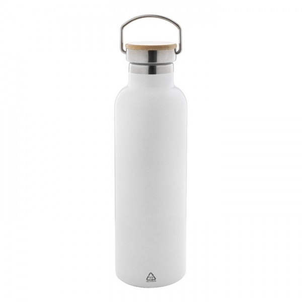 Dvojstenná vákuovo izolovaná fľaša z recyklovanej nerezovej ocele s bambusovým viečkom, 750 ml.