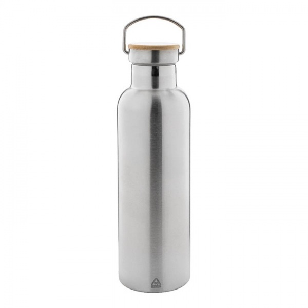 Dvojstenná vákuovo izolovaná fľaša z recyklovanej nerezovej ocele s bambusovým viečkom, 750 ml.