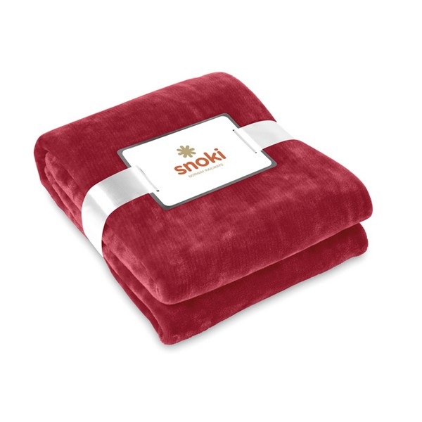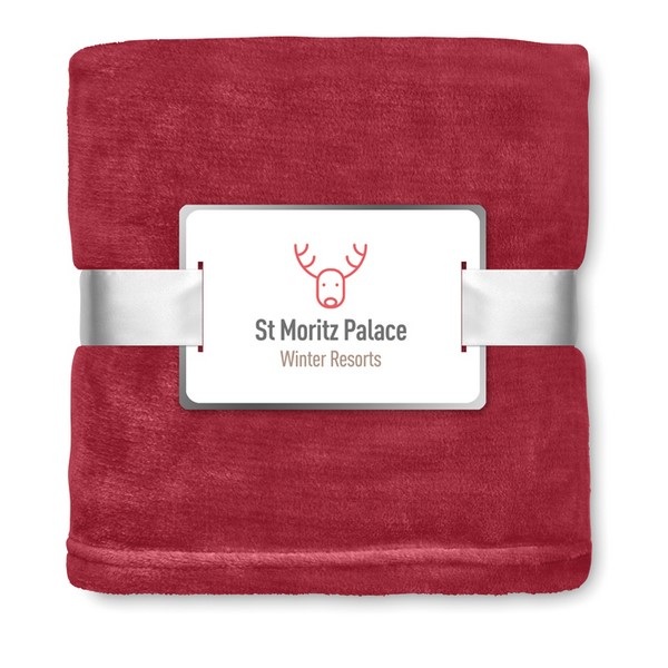 Flanelová fleecová deka 280g/m2 zabalená v stuhe s kartičkou, ktorú je možné potlačiť.