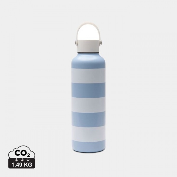 Dvojstenná vákuová fľaša (600 ml) má klasický dvojfarebný pruhovaný dizajn a elegantné silikónové pútko. Udrží nápoje studené 12 hodín a teplé 6 hodín. Nevhodná do umývačky riadu a mikrovlnky, iba ručné umývanie. Certifikácia RCS. Podiel recyklátu: 80 %.