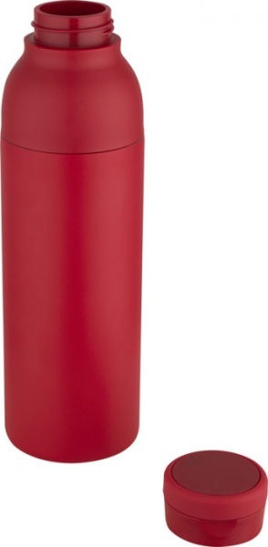 Dvojstenná, vákuovo izolovaná fľaša z nerezovej ocele s certifikáciou RCS so silikónovým uchom vo viečku. Dvojdielna konštrukcia uľahčuje čistenie, práškový lak a medené pokovanie zaisťujú dlhú životnosť. Darčeková krabička z recyklovanej lepenky.