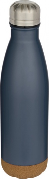 Vákuovo izolovaná fľaša na vodu z nerezovej ocele s korkovými detailmi na dne. Dvojitá izolácia udrží nápoje teplé alebo studené po dobu niekoľkých hodín. Dodáva sa v darčekovej krabičke z recyklovanej lepenky. Objemová kapacita: 500 ml.