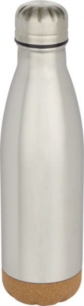 Vákuovo izolovaná fľaša na vodu z nerezovej ocele s korkovými detailmi na dne. Dvojitá izolácia udrží nápoje teplé alebo studené po dobu niekoľkých hodín. Dodáva sa v darčekovej krabičke z recyklovanej lepenky. Objemová kapacita: 500 ml.