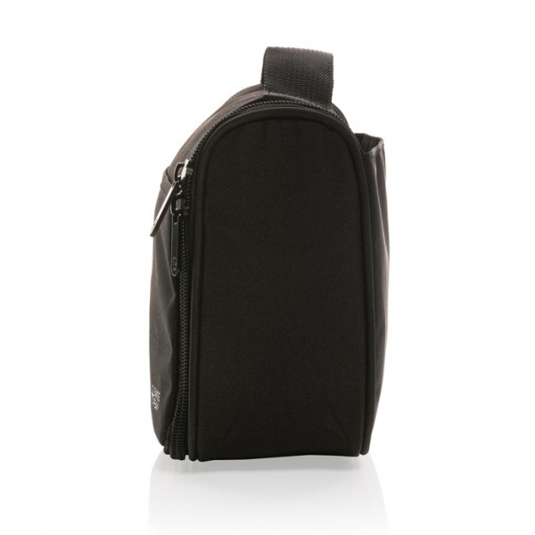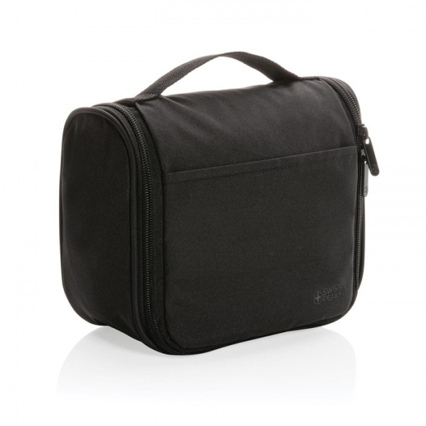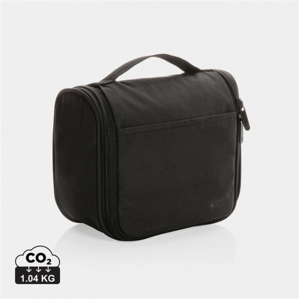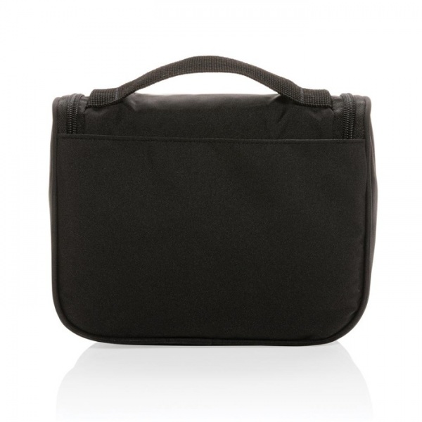Obsahuje hlavný priestor, 4 menšie oddiely, 2 sieťované vrecká, 1 sieťované vrecko na zips. Háčik na zavesenie. Vyrobené zo 100% recyklovaného polyesteru vrátane skenovateľnej zložky AWARE™ garantujúcej obsah recyklátu. Bez PVC.