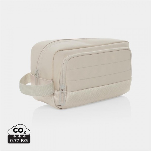 Toaletná taška s hlavným oddielom. Predné vrecko na zips na drobností. Vyrobené z rec. polyesteru s obsahom skenovateľnej zložky AWARE™ garantujúcej obsah recyklátu. Z výťažku každého predaného produktu je prispených 2 % na podporu iniciatívy Water.org.