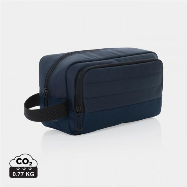 Toaletná taška s hlavným oddielom. Predné vrecko na zips na drobností. Vyrobené z rec. polyesteru s obsahom skenovateľnej zložky AWARE™ garantujúcej obsah recyklátu. Z výťažku každého predaného produktu je prispených 2 % na podporu iniciatívy Water.org.