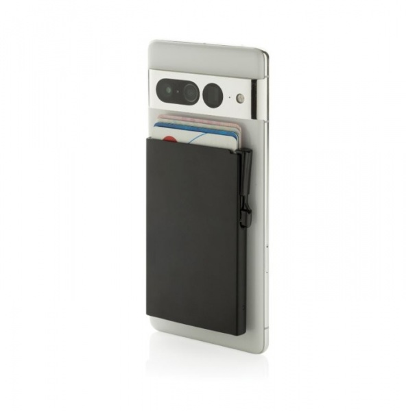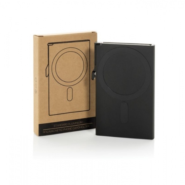 Magnetický RFID držiak chráni karty pred digitálnou krádežou a ľahko sa pripevní na telefón. Pojme 7 plochých alebo 5 embosovaných kariet. Zabudovaný magnetický krúžok a priložený samolepiaci magnetický krúžok. Blokovanie NFC (13,56 MHz).