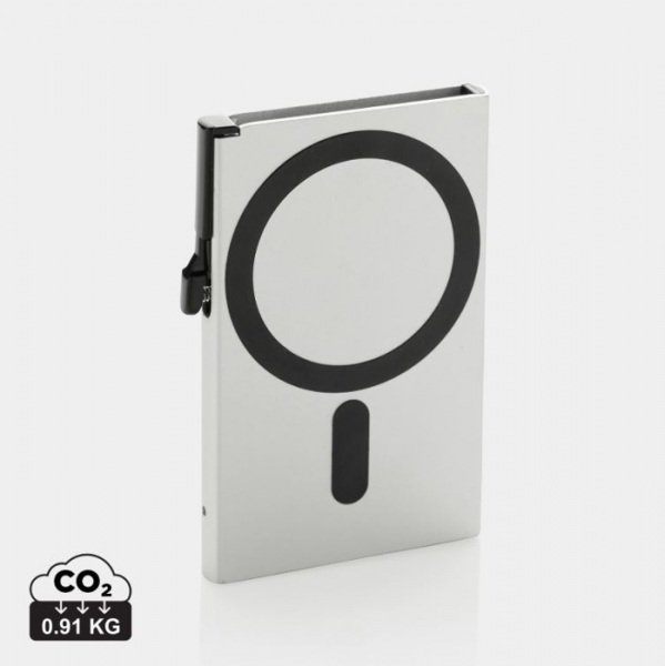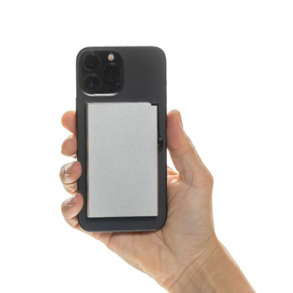 Magnetický RFID držiak chráni karty pred digitálnou krádežou a ľahko sa pripevní na telefón. Pojme 7 plochých alebo 5 embosovaných kariet. Zabudovaný magnetický krúžok a priložený samolepiaci magnetický krúžok. Blokovanie NFC (13,56 MHz).