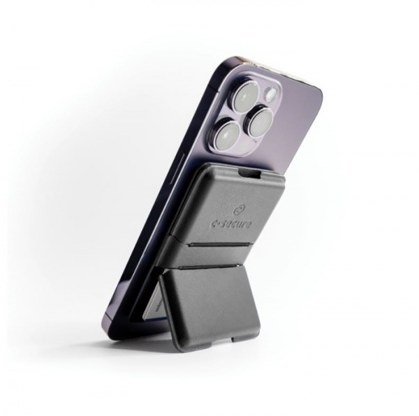 Vďaka integrovanej RFID ochrane chráni až 4 platobné karty, silné zabudované magnety zaisťujú pevné prichytenie k iPhonu – v prípade použitia puzdra kompatibilného s MagSafe, ale i bez neho. Je vyrobená z kvalitnej PU kože. Peňaženka slúži aj ako stojan.