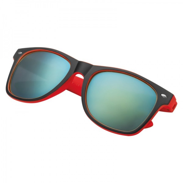 Štýlové dvojfarebné plastové slnečné okuliare so zrkadlovými šošovkami, ochranným filtrom UV 400, 3. kategória.