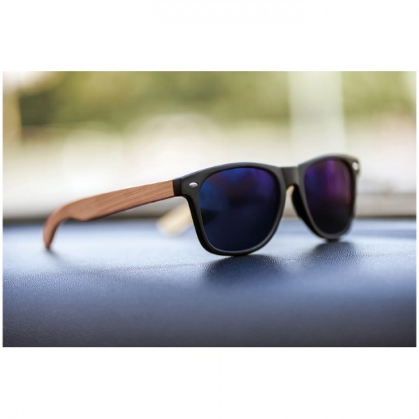 Čierne slnečné okuliare v klasickom dizajne s vysoko kvalitným plastovým rámom a bambusovým vzhľadom. S ochranou proti UV 400, 3. kategórie.
