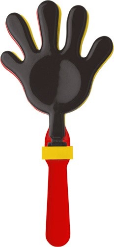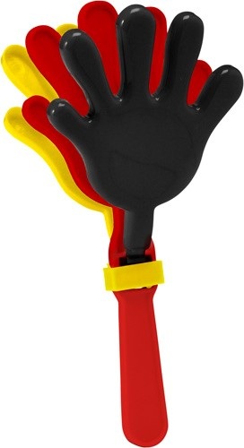 Plastový tlieskač zložený z troch častí v tvare dlane.