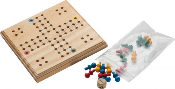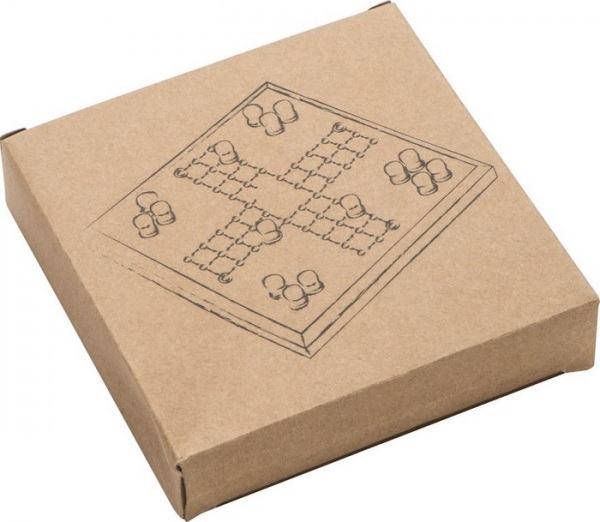 Drevené Človeče, nehnevaj sa! v papierovej krabičke.