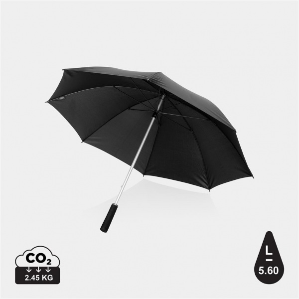 Ľahký manuálny dáždnik o veľkosti 25". Hliníková kostra, rebrá zo sklolaminátu, madlo z EVA. Vyrobené z recyklovaného polyesteru vrátane skenovateľnej zložky AWARE™. Na výrobu bolo použitých 9,4 500ml PET fliaš a ušetrených 5,6 l vody.
