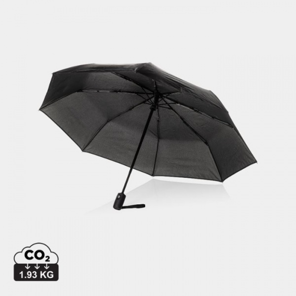 Luxusný 21" dáždnik s automatickým otváraním/zatváraním. Odolný proti vetru. Dodáva sa s oceľovým hriadeľom a laminátovým rámom. 8 rebier, 8 panelov; 3dielny dáždnik. Indikátor AWARE™, ktorý overuje použitie recyklovaných materiálov.