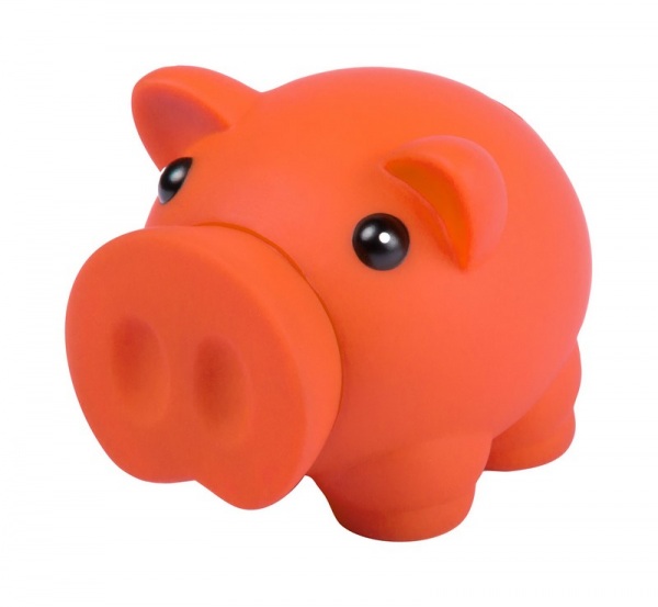 Plastová pokladnička prasiatko, s oddeliteľným Rypáčkom pre otvorenie.