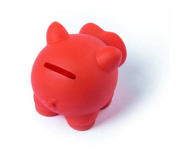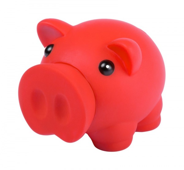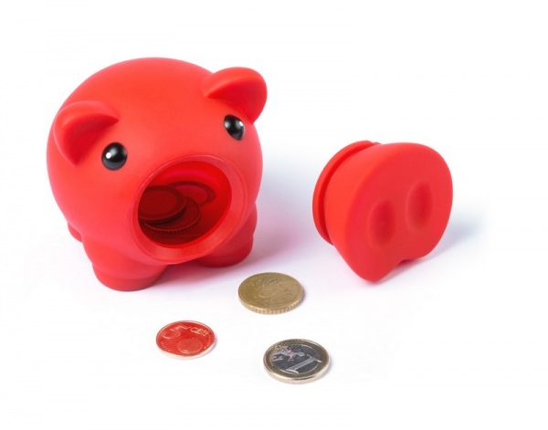 Plastová pokladnička prasiatko, s oddeliteľným Rypáčkom pre otvorenie.