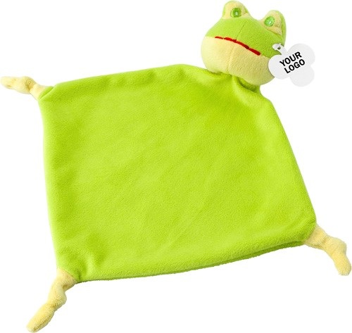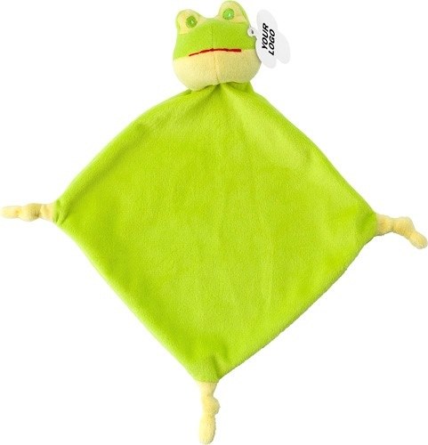 Uterák z plyšu s uzlami na troch koncoch a veselou hlavou zvieratka na štvrtom konci, so štítkom na potlač. Rozmer: 19x19cm.