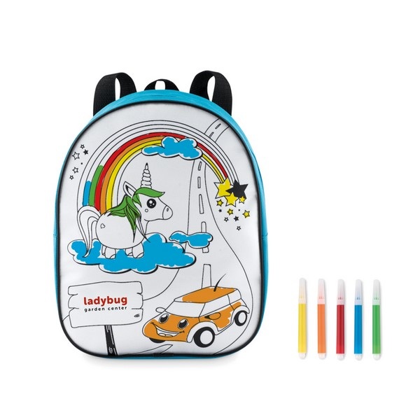 Ruksak zo 600D polyesteru s omaľovánkou a 5 fixkami.