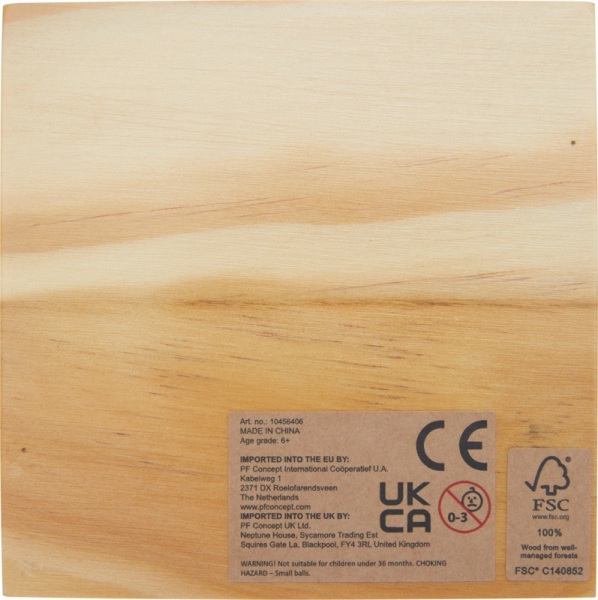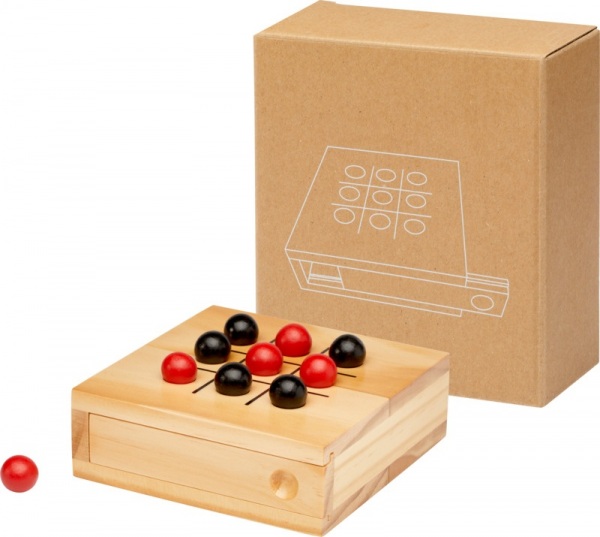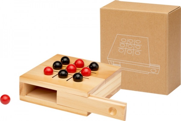 Táto sada je vyrobená zo zodpovedne získaného borovicového dreva. Drevená krabička má posuvný uzáver. Dodáva sa s 5 čiernymi a 5 červenými loptičkami pre dvoch hráčov. Dodáva sa s darčekovou krabičkou z kraftového papiera a návodom na použitie.