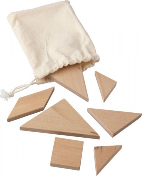Drevené puzzle tangram. Balené v bavlnenom vrecku so sťahovacou šnúrkou.