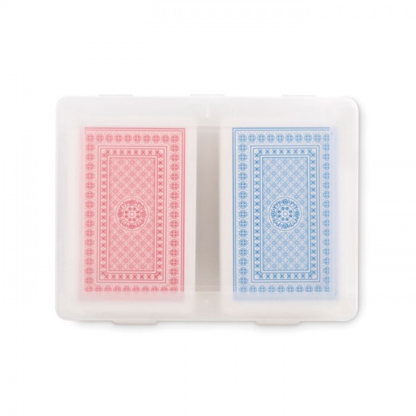 Sada 2 klasických hracích kariet v recyklovanom PP obale. 2x54 kariet (červená a modrá).