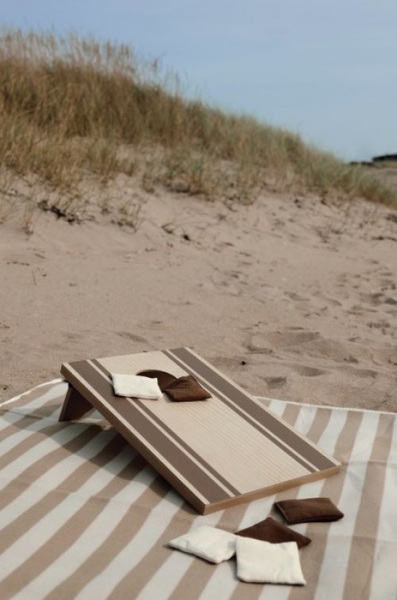 Užite si túto zábavnú a jednoduchú hru vonku alebo v interiéri. Súprava obsahuje dosku vyrobenú z MDF s certifikátom FSC® a šesť plátených vrecúšok na hádzanie. Hra je zabalená v plátennej taške. Súčasťou balenia je leták s návodom.