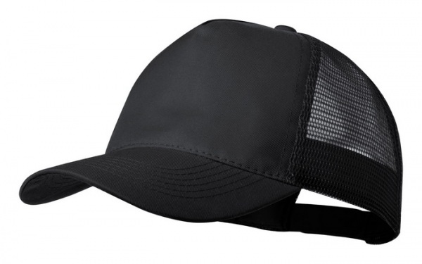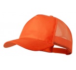 5 panelová baseballová čiapka so sieťovanou zadnou stranou a plastovým pásikom na nastavenie veľkosti, polyester.