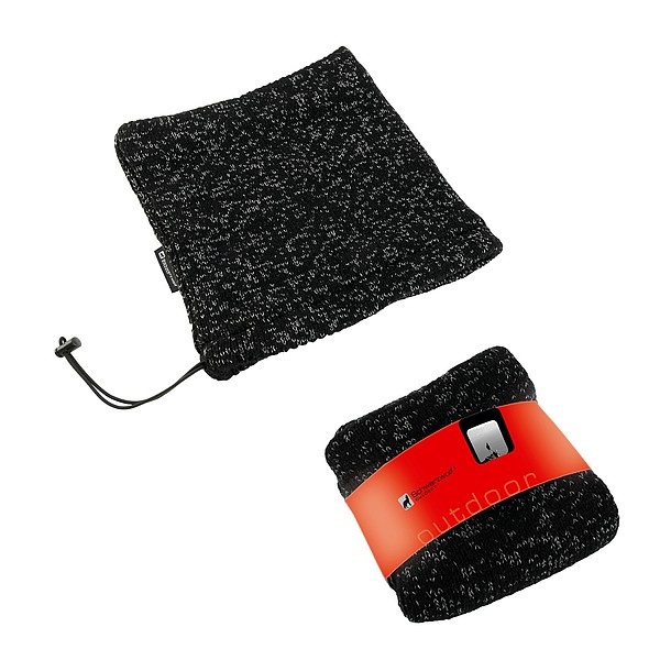Pletený multifunkčný nákrčník 2v1 prešívaný reflexné niťou. Nákrčník je vhodný predovšetkým do zimných mesiacov a obsahuje gumičku k stiahnutiu pri krku, vďaka ktorej ho možno použiť aj ako zimnú čiapku. Podšívka je z mäkkéhopríjemného fleece materiálu.