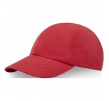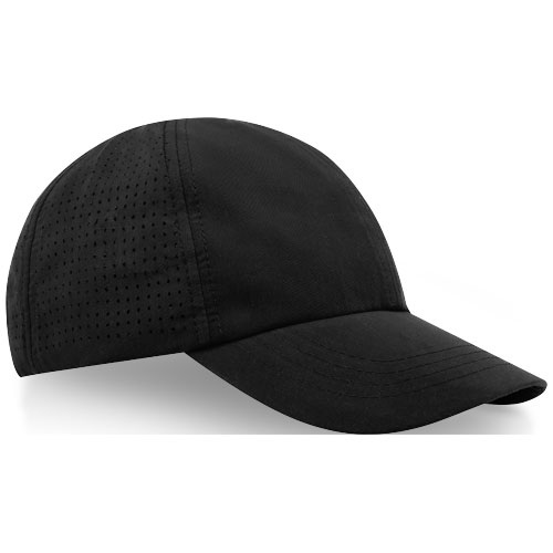 Reklamné čapice z udržateľných materiálov. Predtvarovaný šilt. Zadné panely s vetracími otvormi vyrezanými laserom. Kovová pracka.