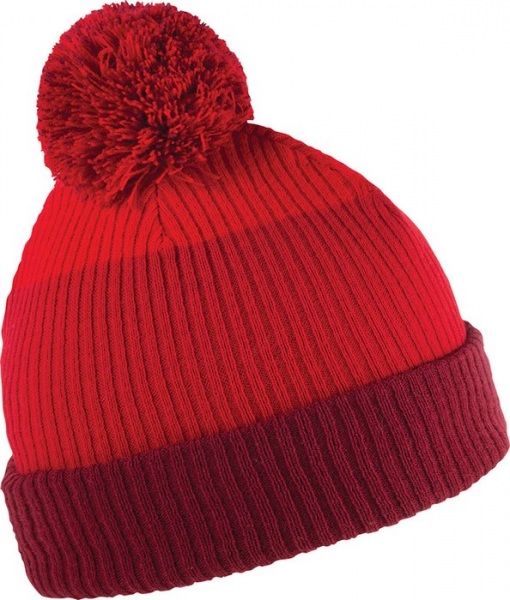 Zimná čiapka s brmbolcom vyrobená v Českej republike. Tri rôznofarebné vodorovné pruhy v kombinácii s farebným brmbolcom dodávajú čiapke šmrnc.