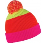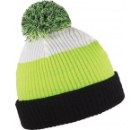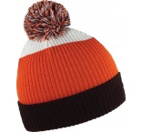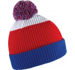 Zimná čiapka s brmbolcom vyrobená v Českej republike. Tri rôznofarebné vodorovné pruhy v kombinácii s farebným brmbolcom dodávajú čiapke šmrnc.