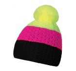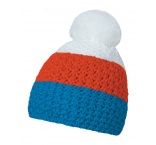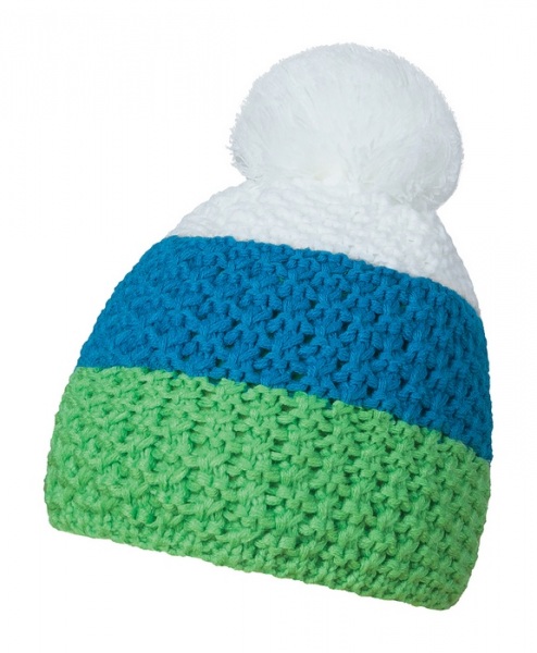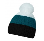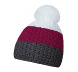 Zimná čiapka vyrobená v Českej republike zo 100% acrylu pomocou vrkočového pletenia. Vnútorná strana z fleece. Čiapka má tri vodorovné pruhy a brmbolec.
