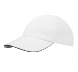Reklamné čapice z udržateľných materiálov. Predtvarovaný šilt sa sendvičom. Laserom vyrezané vetracie otvory. Kovová pracka.