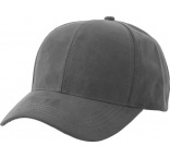 Semišová šiltovka so šiestimi panelmi a zapínaním na kovovú pracku vzadu. Otvory v prednej časti panelu na hornej strane.