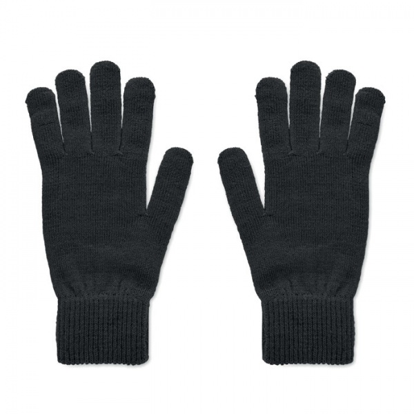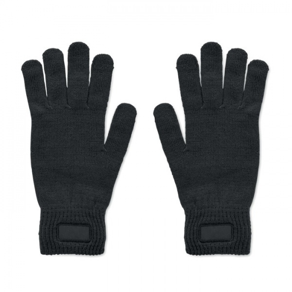 Pletené rukavice z mäkkého pružného RPET polyesteru s ozdobnou nášivkou.
