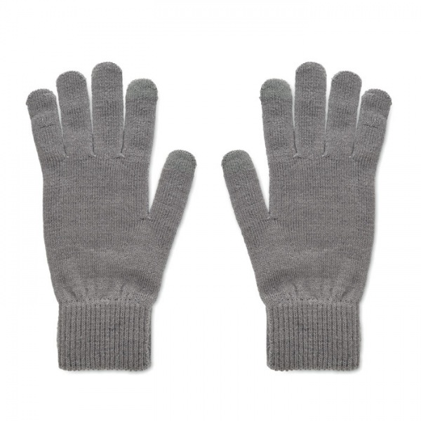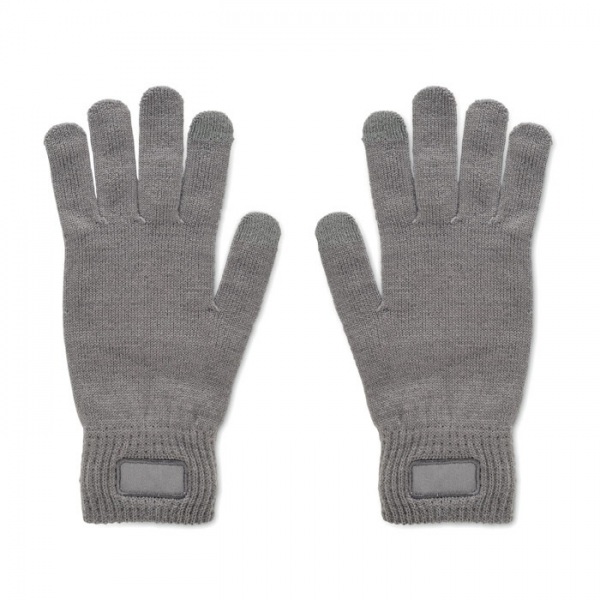 Pletené rukavice z mäkkého pružného RPET polyesteru s ozdobnou nášivkou.